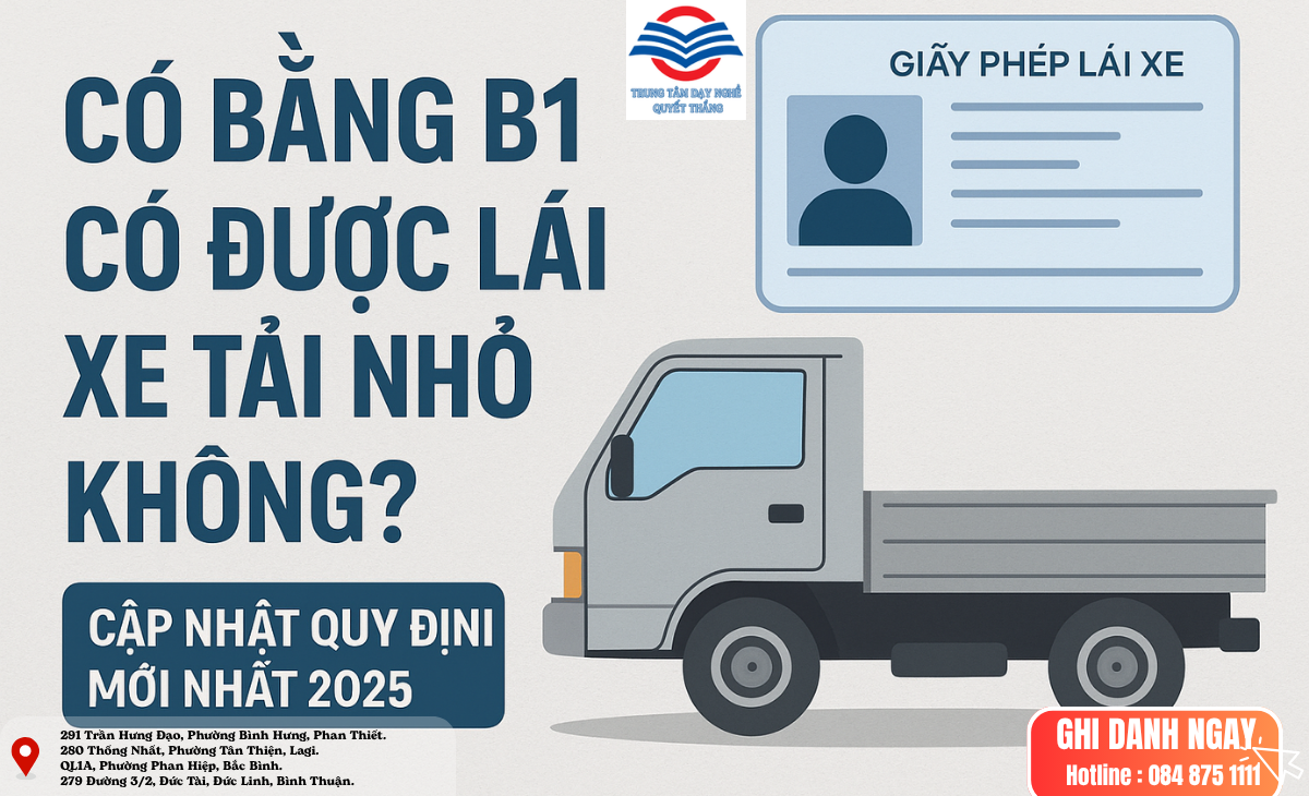 Nhiều người sau khi thi và nhận bằng lái ô tô hạng B1 thường băn khoăn không biết có bằng B1 có được lái xe tải nhỏ không. Đặc biệt, khi nhu cầu sử dụng xe tải nhẹ để phục vụ công việc hoặc kinh doanh cá nhân ngày càng phổ biến, việc hiểu rõ phạm vi điều khiển phương tiện theo từng hạng bằng là vô cùng quan trọng. Bài viết dưới đây sẽ giúp bạn cập nhật quy định mới nhất năm 2025 về bằng B1, mức giới hạn khối lượng xe tải được phép lái và những lưu ý cần biết để tránh vi phạm luật.