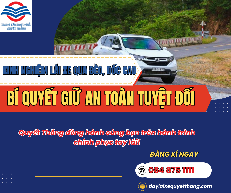 Lái xe qua đèo, dốc cao đòi hỏi sự chuẩn bị kỹ lưỡng, kỹ năng vững vàng và sự tập trung cao độ. Chỉ cần ghi nhớ những kinh nghiệm quan trọng như: kiểm tra xe trước chuyến đi, giữ tốc độ hợp lý, sử dụng số thấp, quan sát liên tục và tránh những sai lầm phổ biến, bạn hoàn toàn có thể tự tin chinh phục mọi cung đường đèo dốc một cách an toàn. Nếu bạn muốn được rèn luyện kỹ năng lái xe chuyên nghiệp hơn, hãy tham gia khóa học tại Trung tâm Quyết Thắng để được hướng dẫn chi tiết và bài bản nhất.