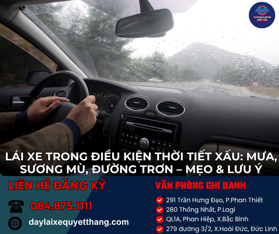 Lái xe trong điều kiện thời tiết xấu luôn là thử thách với mọi tài xế, dù là người mới hay đã có nhiều năm kinh nghiệm. Mưa lớn, sương mù dày hay đường trơn trượt đều có thể khiến tầm nhìn bị hạn chế, xe mất độ bám đường và tăng nguy cơ xảy ra tai nạn. Vì vậy, việc nắm vững kỹ năng lái xe trong điều kiện thời tiết xấu là yếu tố bắt buộc để đảm bảo an toàn cho bản thân và những người xung quanh. Bài viết dưới đây sẽ chia sẻ chi tiết những mẹo và lưu ý quan trọng giúp bạn điều khiển xe an toàn, tự tin trong mọi tình huống thời tiết khắc nghiệt.
