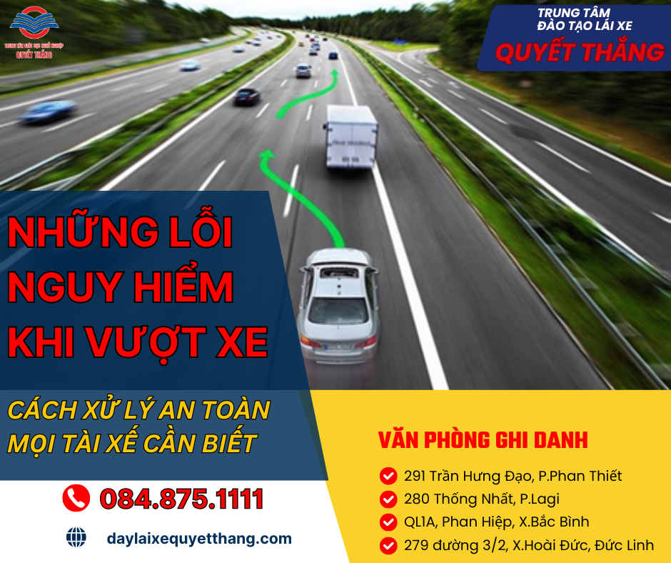 Trong quá trình tham gia giao thông, vượt xe là tình huống quen thuộc và thường xuyên xảy ra. Tuy nhiên, không ít tài xế vì chủ quan hoặc thiếu kinh nghiệm mà mắc phải những lỗi nguy hiểm khi vượt xe, dẫn đến nhiều vụ tai nạn nghiêm trọng. Để lái xe an toàn, mỗi người cần nắm vững kỹ năng vượt xe đúng cách và biết cách xử lý trong mọi tình huống. Bài viết này sẽ phân tích chi tiết các lỗi thường gặp khi vượt xe và hướng dẫn cách xử lý an toàn để giúp bạn tự tin hơn sau vô lăng.
